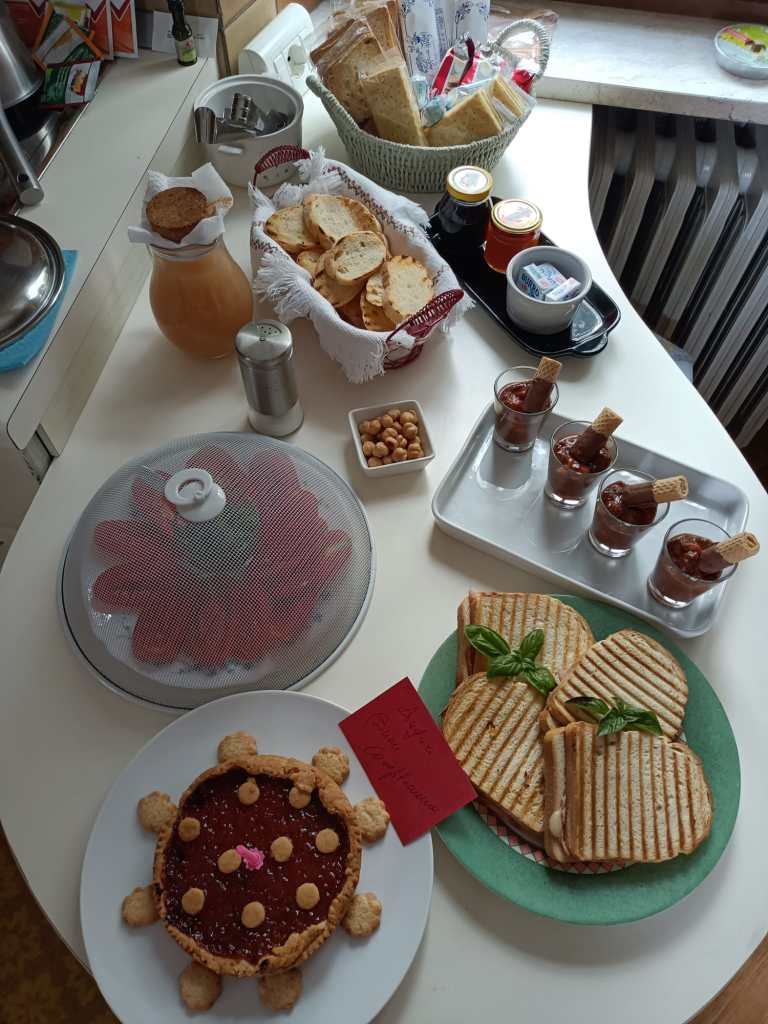La colazione inclusa nel prezzo della camera comprende: biscotti, fette biscottate, marmellate, fetta di torta e caffeteria.