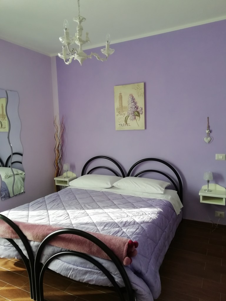 E’ la camera matrimoniale disponibile anche di un letto singolo. Dai colori sul viola tenue, vi accoglierà con l’estro creativo e la forza spirituale che la caratterizza donandovi serenità.